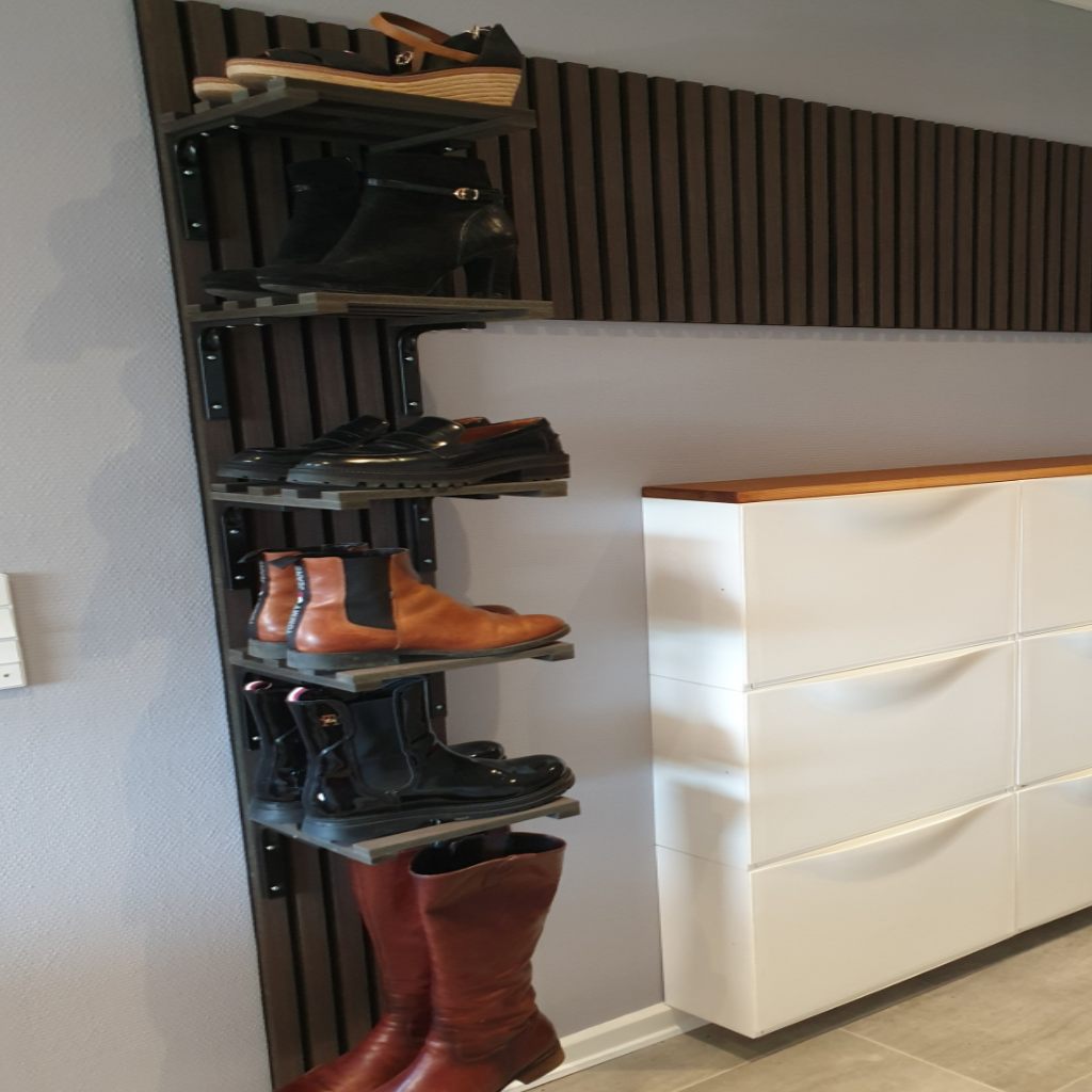 Vi sælger også metalhylder og metalkroge til akustikpaneler, der nemt kan monteres og dermed bliver akustikpanelerne en aktiv del af din indretning.